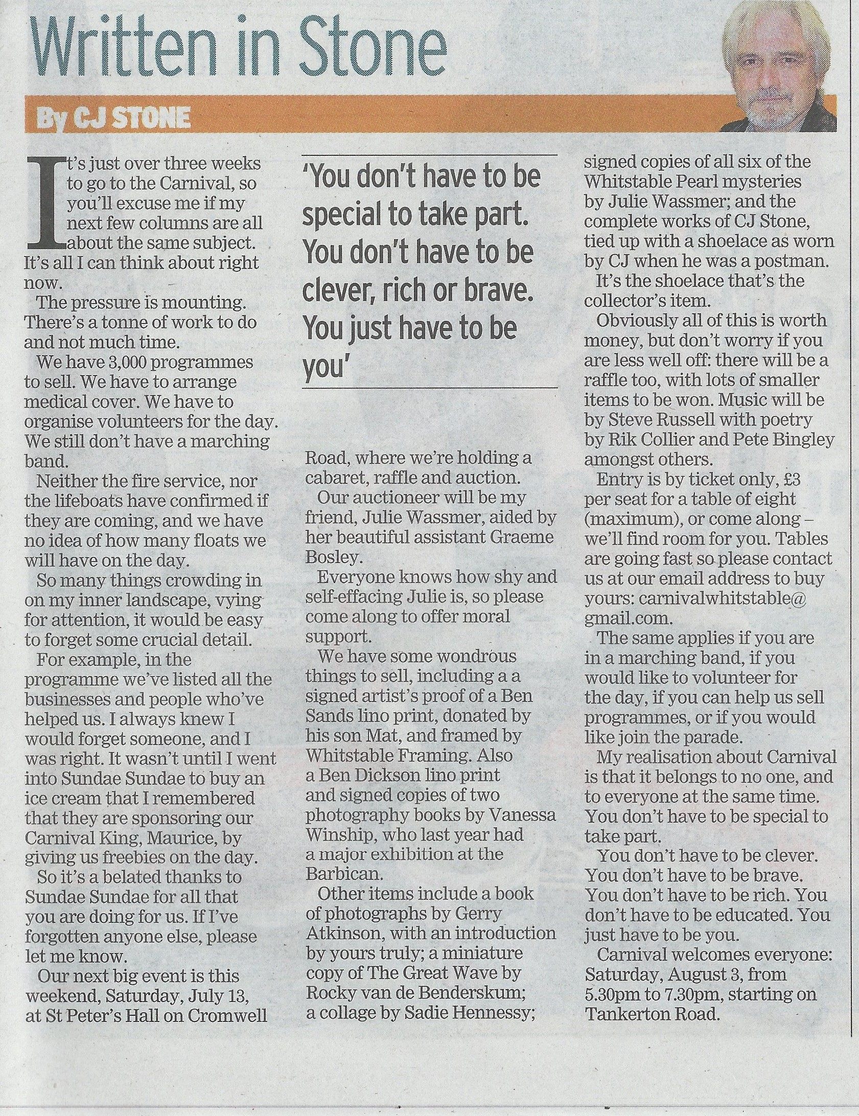 For example, in the programme we’ve listed all the businesses and people who’ve helped us. I always knew I would forget someone, and I was right. It wasn’t until I went into Sundae Sundae to buy an ice cream that I remembered that they are sponsoring our Carnival King, Maurice, by giving us freebies on the day.