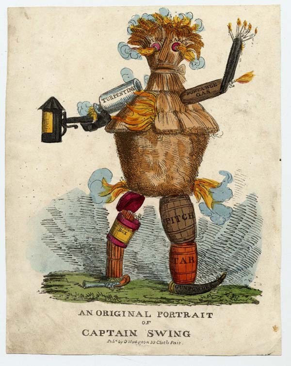 They were called the Swing riots after the eponymous Captain Swing. The made-up name symbolised or represented the anger of the poor labourers in rural England who wanted a return to the pre-machine days when human labour was used. The threatening letters were sent to farmers and landowners which demanded that wages increase and which often told farmers to desist in their employment of threshing machines.
