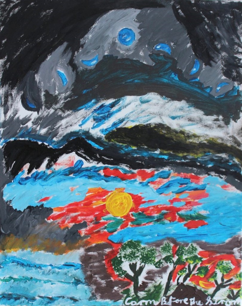 Recently I gave a talk to my local Labour Party Women’s forum: Woman as Landscape. I explored the work of two women artists in terms of class, race and gender: the Cumbrian landscape painter and miner’s daughter, Sheila Fell and the Mexican revolutionary, Frida Kahlo. I included one of my earlier paintings, Scary Park, which is a self-portrait within a landscape, expressing my struggle with illness. Fell and Kahlo are both role models for me. In an era when women artists were less visible and valued, they transcended their oppression to become recognised and respected artists. I love the power and the poetry of Fell’s landscapes. I am also inspired by the work of the Abstract Expressionist women artists for the same reasons: Joan Mitchell and Elaine de Kooning are two examples.