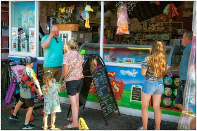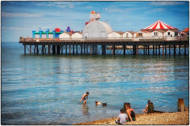 Herne Bay is being cleaned up and renovated to attract visitors and last week was the busiest I have seen it. A mobile ice cream seller was doing a good trade amongst the beach huts. Families and young people were sunbathing or playing along the beach. On the pier children were fishing for crabs or enjoying funfair rides. The Sugar Hut and Shooting Gallery were busy and pop-up market stalls selling seaside souvenirs were doing a brisk trade. The remains of the old Herne Bay pier are a distinctive landmark in the distance. The seafront gardens near the clock tower had a few walkers strolling along. People were enjoying lunch at the outdoor cafes and pubs and shoppers in the town were keeping a social distance. The children’s playground and mini golf were popular and the amusement arcades and traditional seaside gift shops were having a good day. It was a colourful and enjoyable day out.