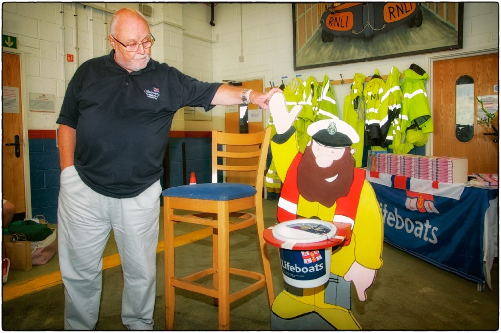 As a publicly funded charity, volunteers make up 95% of the RNLI which has been saving lives at sea for almost 2 centuries—regardless of whose lives they are or how they came to be in danger. Gerry gave his talk while standing beside one of his “Stormy Stans”—the wooden nautical characters who offer RNLI collection buckets to the public for much-needed donations.