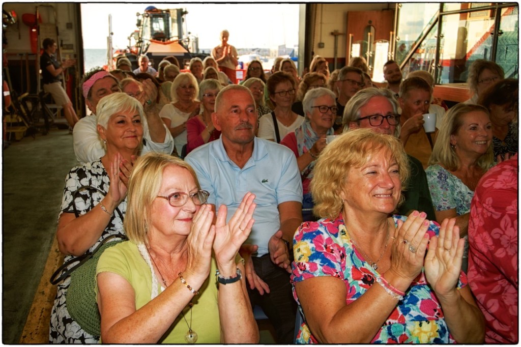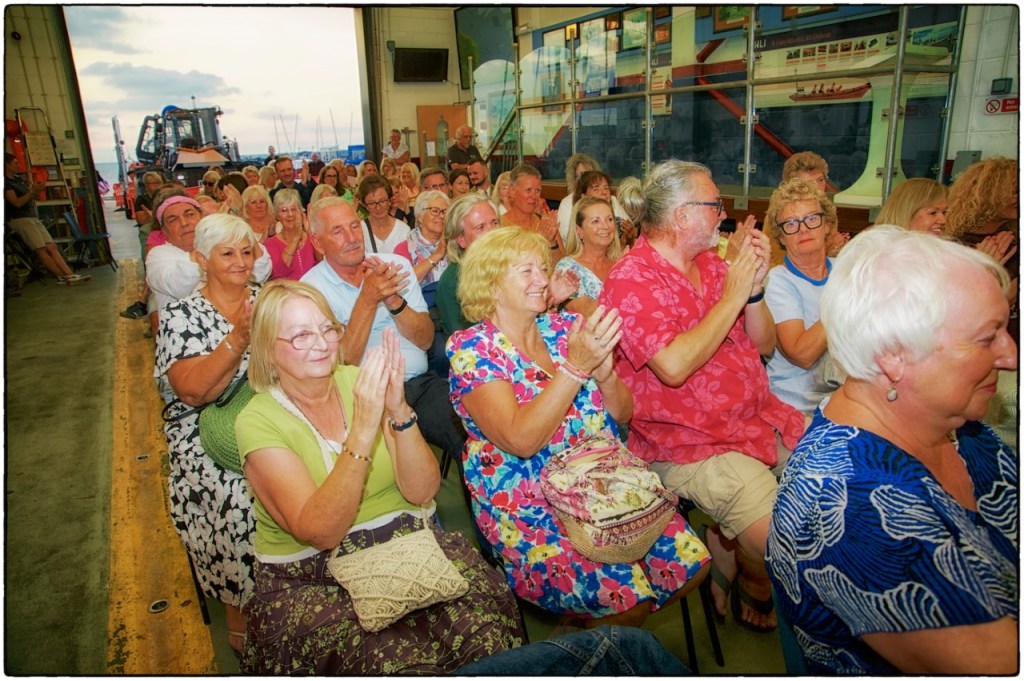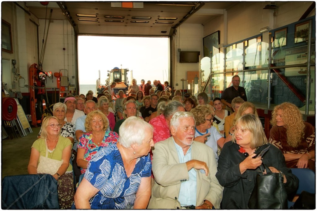 Every author lives in fear that perhaps no-one will turn up to their events and book launches but I was heartened by the news that tickets had sold out for this event over a week before, that rain was holding off and the stifling temperatures of the recent heatwaves were finally abating. With the lifeboat station’s massive doors open for the evening, all there was to do was welcome the guests.
