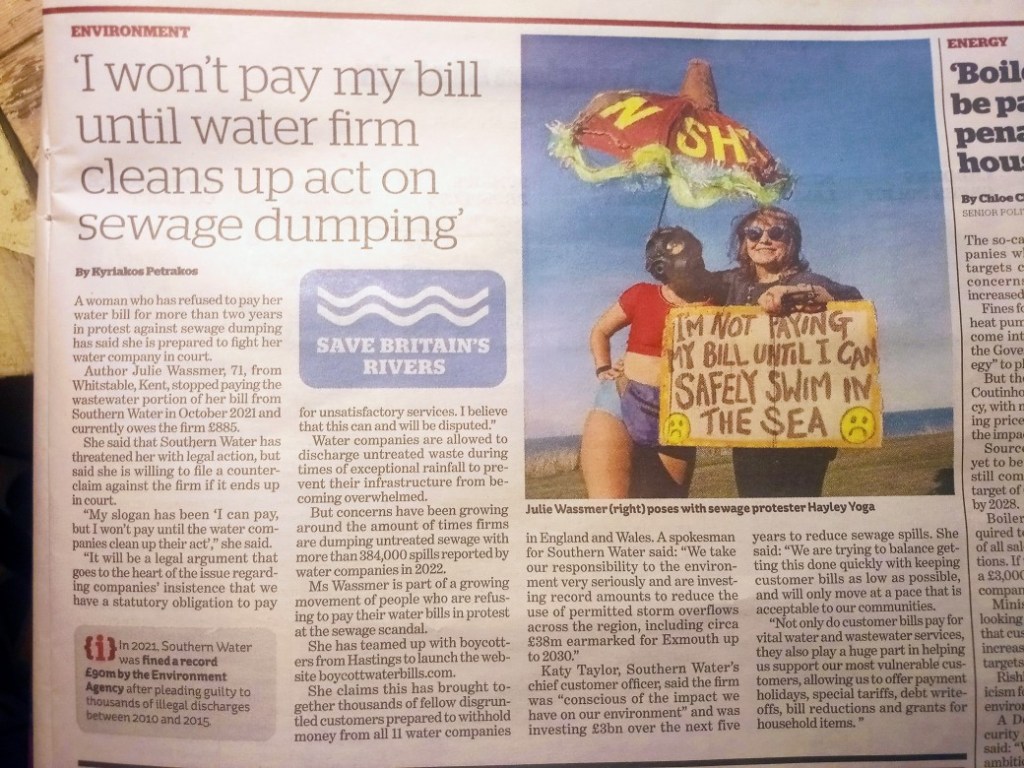 Our growing movement of water company customers, who are now boycotting the wastewater element of their bills in protest at sewage dumping, gained massive media attention last week with no fewer than three features in the “i” News.