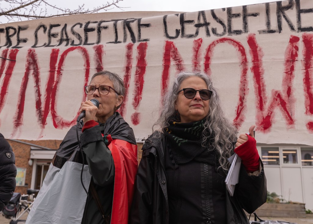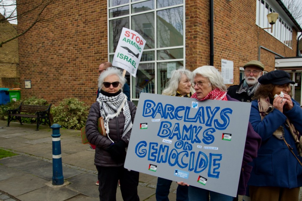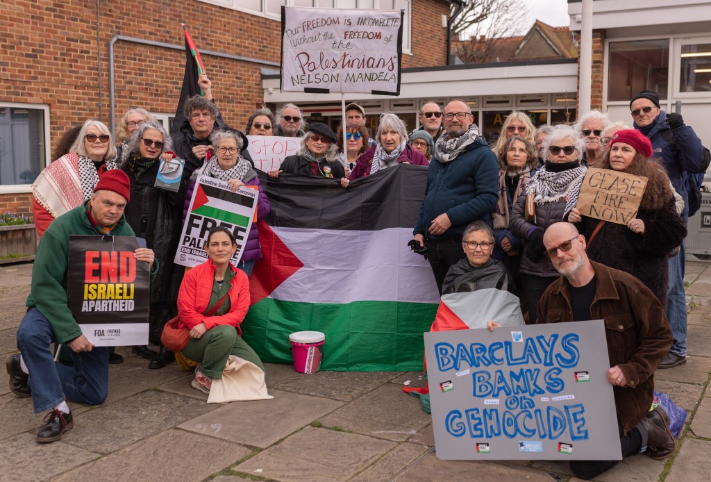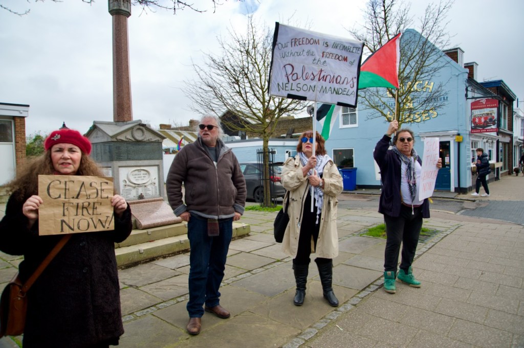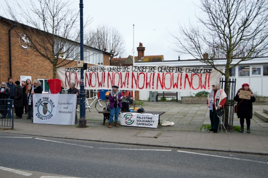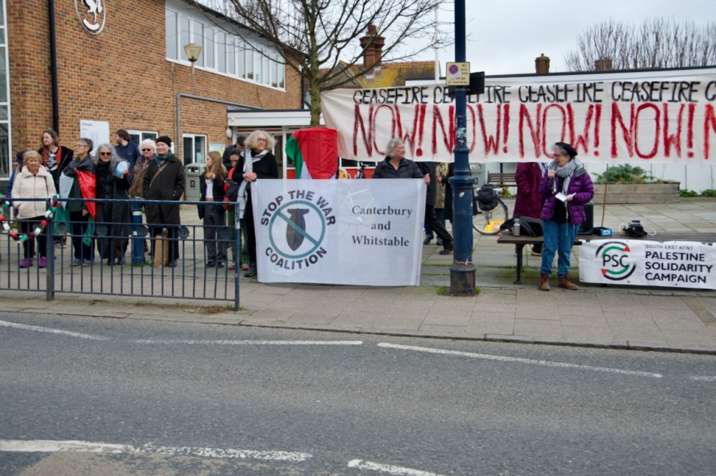 A demonstration calling for a ceasefire in Gaza took place in Whitstable on Saturday 17th February outside the public library.