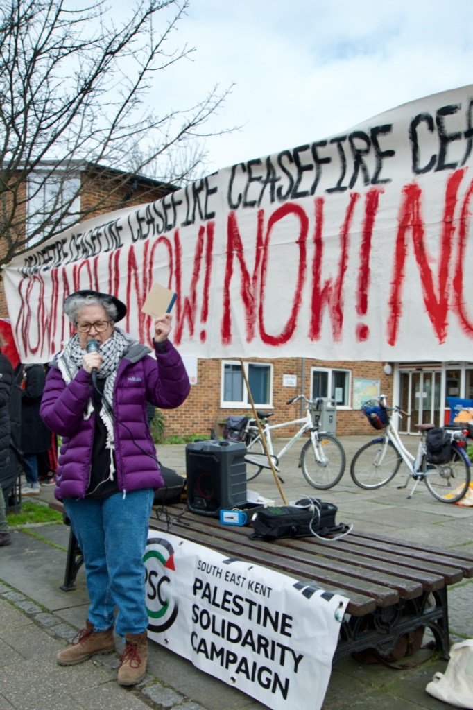 Organised by South East Kent Palestine Solidarity Campaign (PSC), at least a hundred people came to support the hour-long event which was timed to coincide with London protests and to raise awareness of an important parliamentary vote taking place on Wednesday 21st February on whether the UK should call for an immediate ceasefire in Gaza. This is a crucial moment in parliament and we can all make a difference in lobbying MPs ahead of the vote.