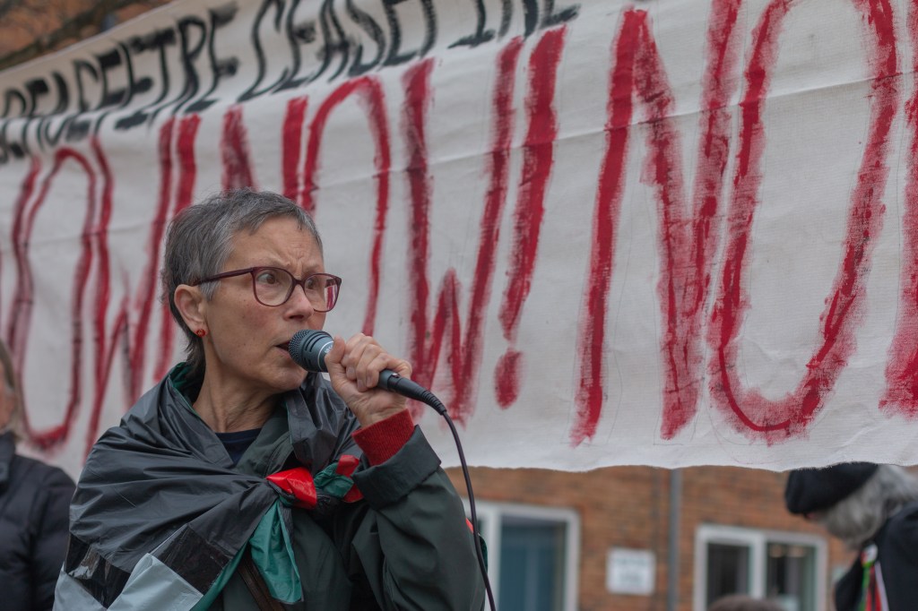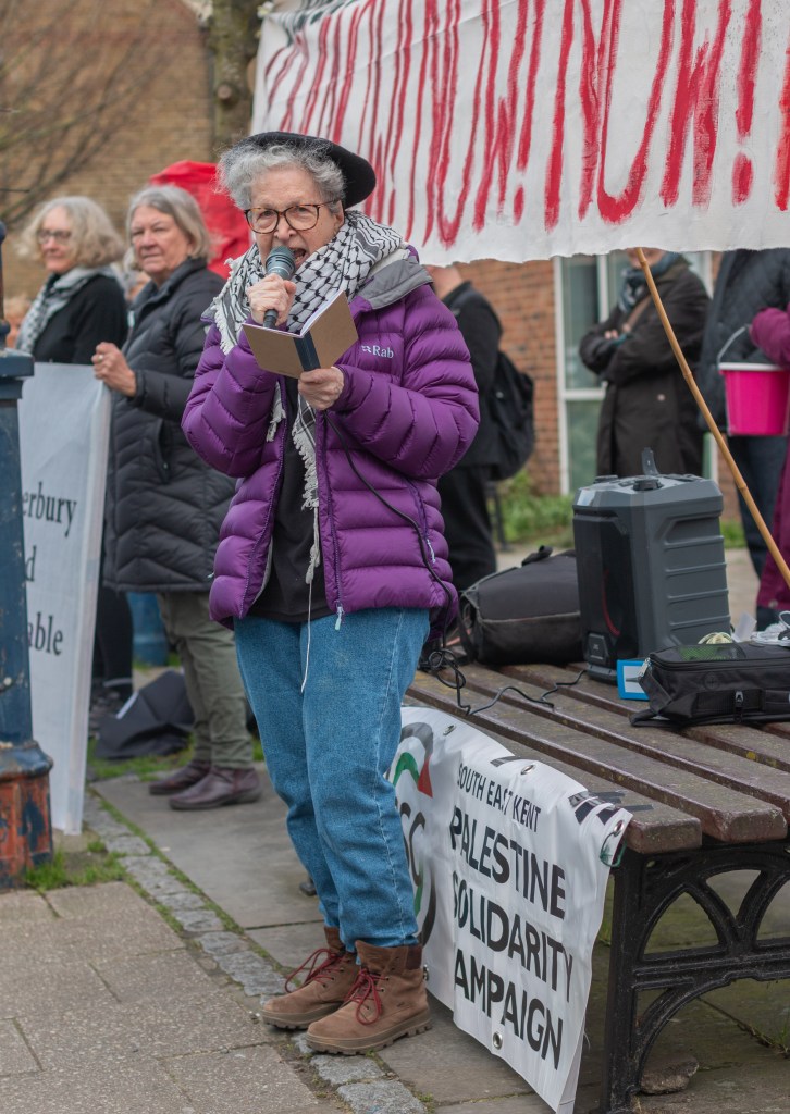 Whitstable resident, Diane Langford, a member of the PSC National Executive and the main speaker on the day, said: “Although our rally had been staged with less that 24 hours’ notice, it was heartening that so many Whitstable people turned up to show their solidarity with the Palestinian people by joining us in chanting “Cease Fire Now!” It’s an outrage to so many people that when tens of thousands of lives continue to be lost in Gaza and 1.9 million people have already been displaced, local politicians, including councillors, are continuing to act aloof as though genocide is not their business, while hosting arms factories in Kent, including Amphenol right here in Whitstable.”