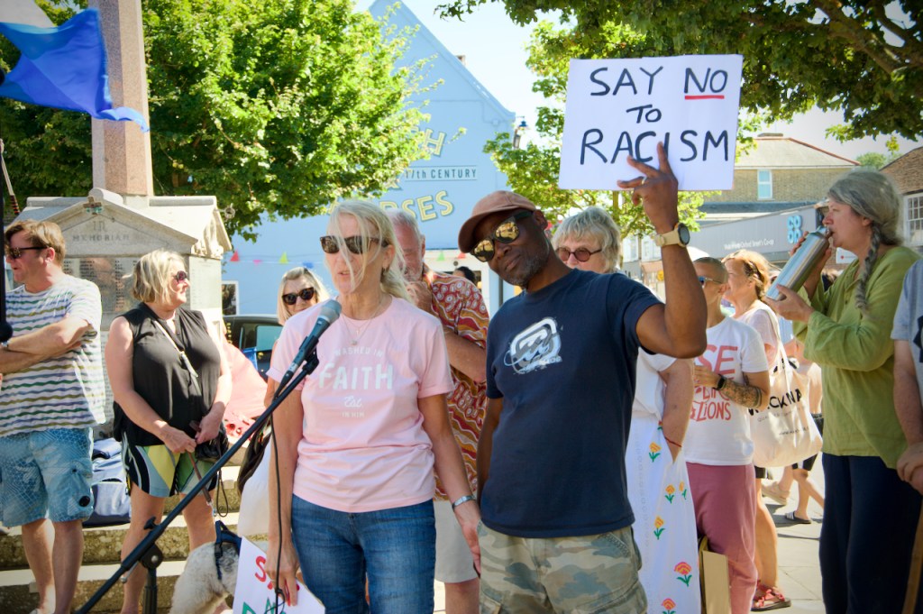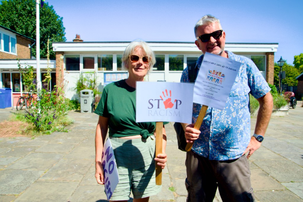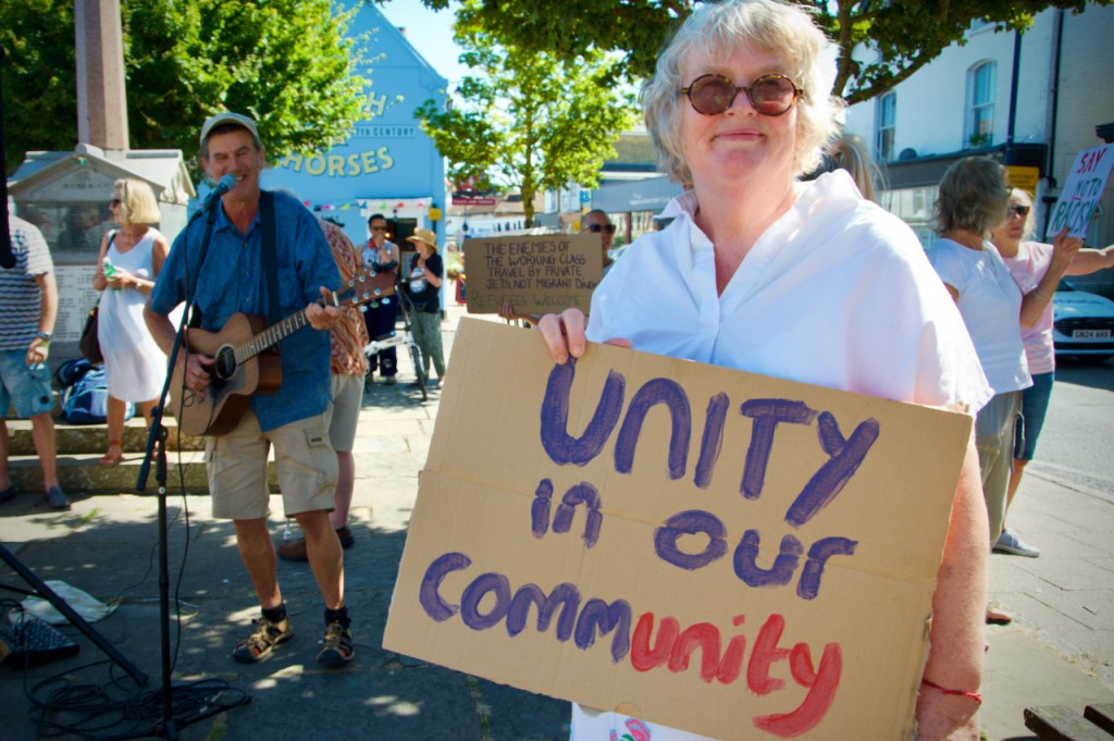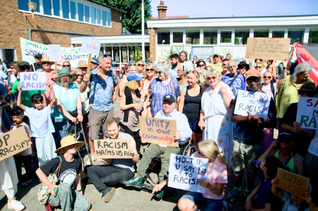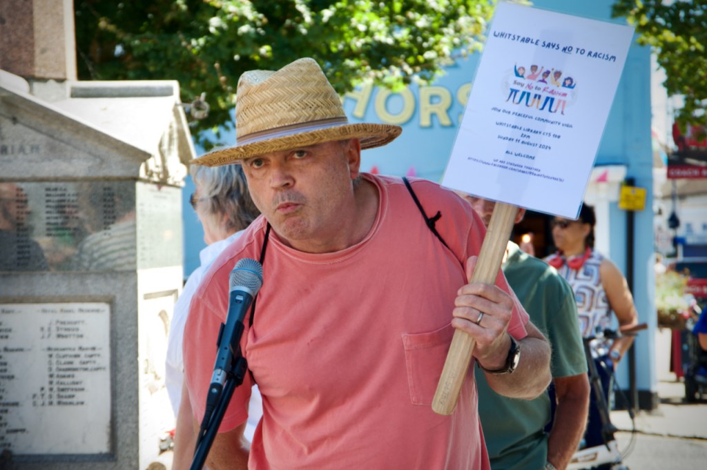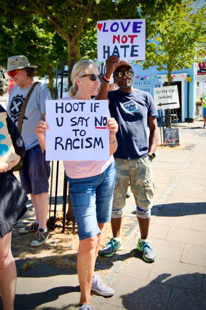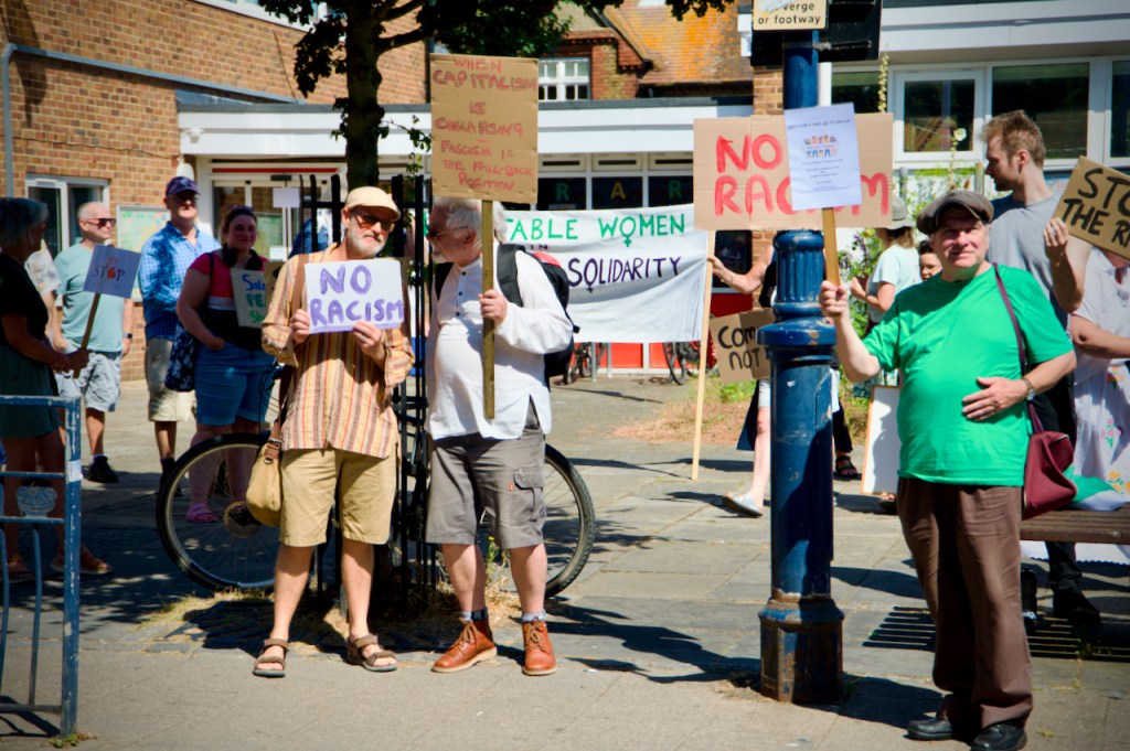 Last Sunday, the 11th August, there was a pretty spontaneous gathering of like-minded folk outside the library in Whitstable at 2 pm. This was brilliantly organised by Mary and Elane and equally well responded to by a whole host of local residents and supported under the general banner, Whitstable Says No To Hate.