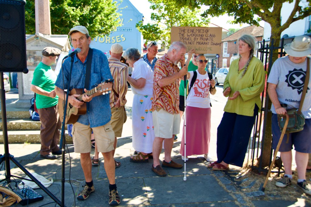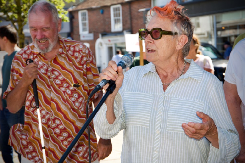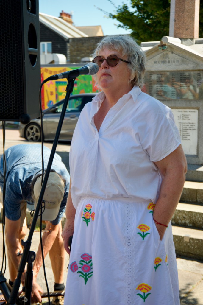 Elane organised an open mic, which became the operational focus of the event. The amplifier and mic were provided by Brummie Jon while local brilliant musician and activist, Nigel Hobbins, let us use his mic stand.