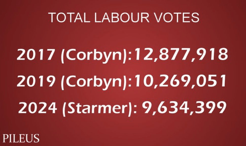 Firstly because it shows that Starmer got into power under false pretences. He did not gain power because he was popular, but merely because he was marginally less unpopular than the previous government, which had 14 years of power, and which is generally understood to be the most venal, the most corrupt in British political history. It was the Conservative Party who lost the confidence of the British people, not the Labour Party who gained it. Remember this every time Starmer passes an unpopular law and cites his majority as his mandate. It is a false majority. It is a false mandate.