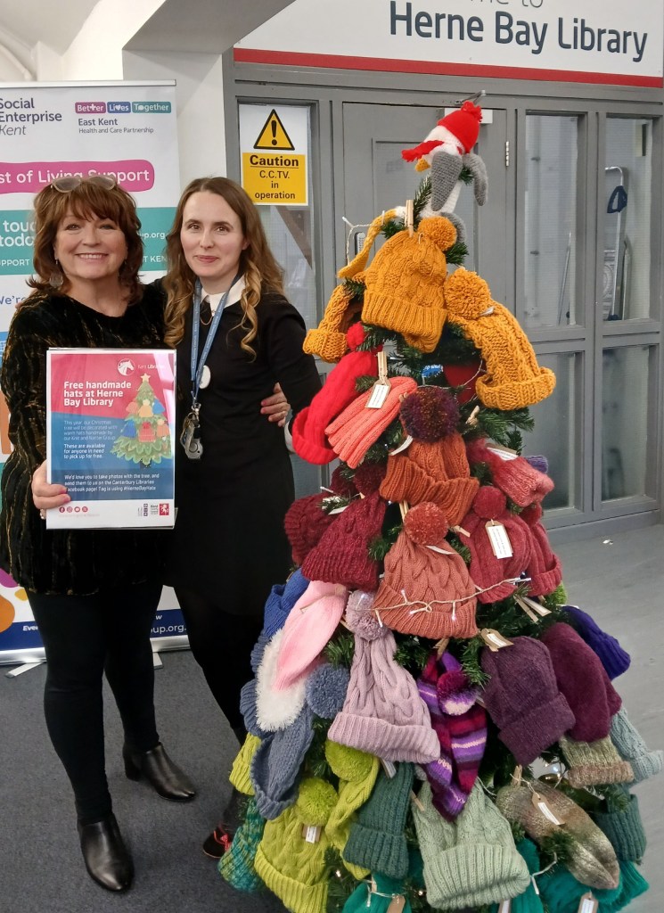 Recently I was invited to launch an initiative set up by library worker Vanessa Cross at Herne Bay Library by which anyone in the community can help themselves to a free warm hat knitted by kind volunteers. The hats are currently displayed on the library’s Christmas tree, which was donated by the local Morrisons store. As part of this initiative, Herne Bay Tesco has given a number of free toiletries which, together with any unclaimed hats, will be sent to the homeless charity, Porchlight, after December 20th.