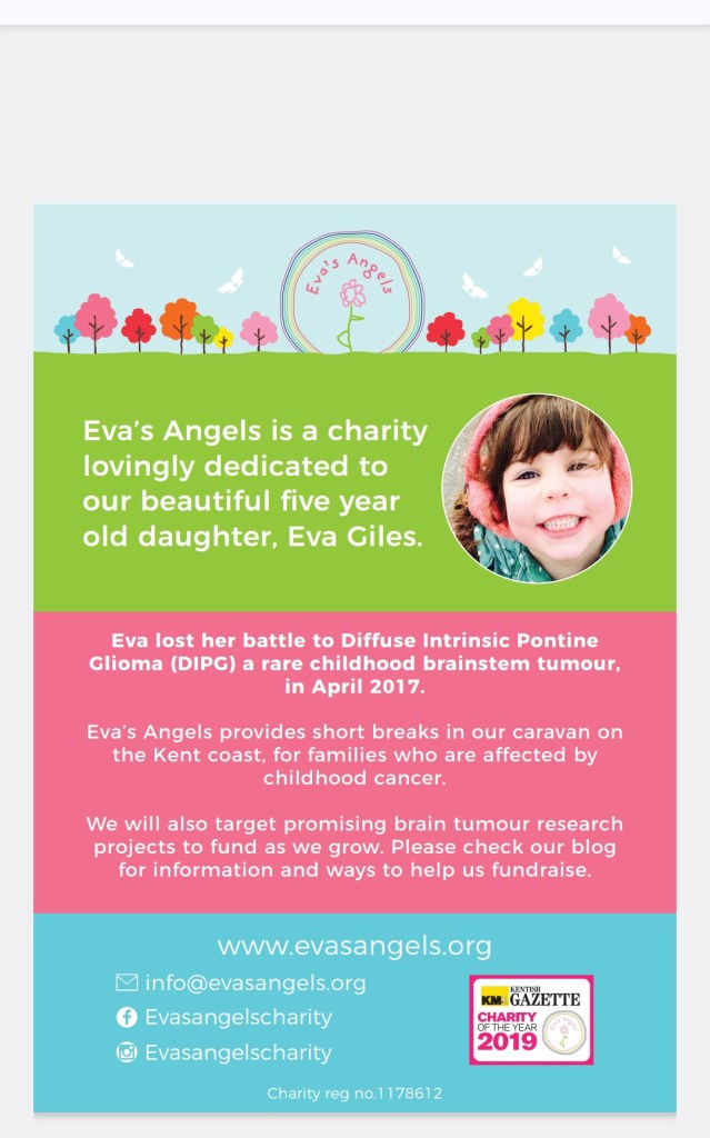 We are always in need of funds because apart from offering families these welcome breaks, we also plan to target promising brain tumour research projects to fund as we grow. We work very closely with The Brain Tumour Charity, and Abbie’s Army, to fund promising clinical trials into paediatric brain tumours. As a family we had lots of support from charities, most of which I didn’t know existed until Eva’s diagnosis, and this is what drove us to set up Eva’s Angels. We’ve staged numerous fundraising events which can be read about in the blogs on our website and we welcome ideas for more. Donations are always welcome, no matter how small.