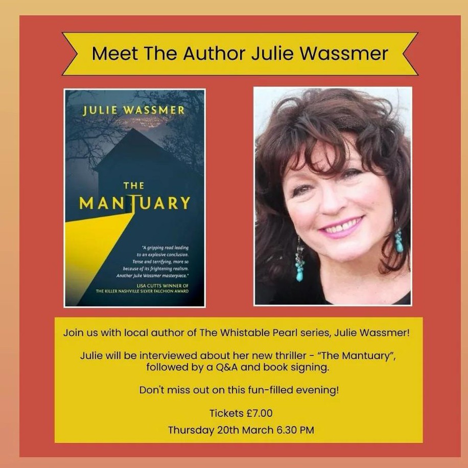 One such indie treasure is The Little Green Bookshop in Herne Bay High Street where I’ll be taking part in a special author event on Thursday 20th March at 6.30pm, talking to Whitstable’s Graeme Bosley about my Whitstable Pearl Mystery crime novels and the TV series based on them, Whitstable Pearl, starring Kerry Godliman. Graeme and I will also be discussing my latest book, The Mantuary, a standalone thriller set in Yorkshire, which focuses on domestic abuse and coercive control—with a Q & A session straight after.