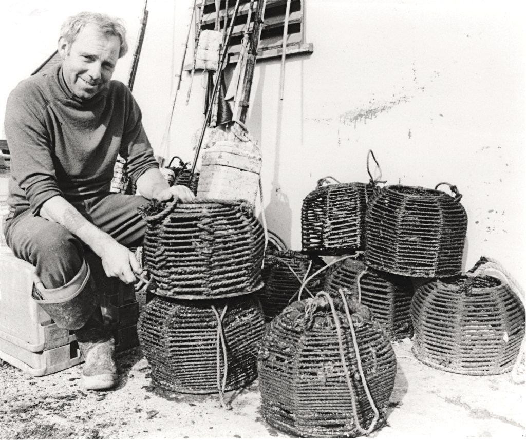 This changed in 1901 when fishermen from Sheringham, Norfolk arrived, bringing with them an innovative means of catching whelks: the Sheringham whelk pot. This is a kind of trap. It has a cast iron base, with iron ribs wrapped in rope, with a hole in the top. The trap is baited. The whelks climb the pot to get to the bait and are then trapped by the crinney net inside (named for its shape like a crinoline skirt).