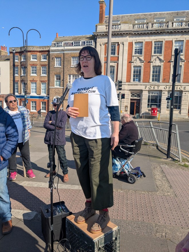 These were people, she said, who had had enough of ‘spiralling bills while water companies pour increasing amounts of sewage into our seas and waterways with impunity.’